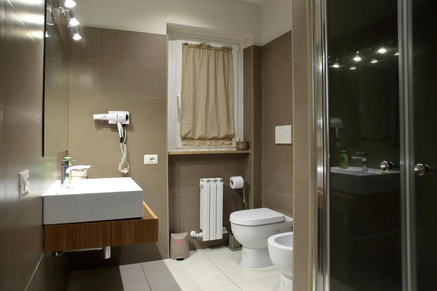 Appartamento. Featuring a private entrance, this air-conditioned apartment comprises 1 living room, 2 separate bedrooms and 2 bathrooms with a shower and a bidet. In the kitchen, guests will find a stovetop, a refrigerator, kitchenware and an oven. The spacious apartment provides a washing machine, soundproof walls, a seating area, a flat-screen TV, as well as city views. The unit offers 3 beds.