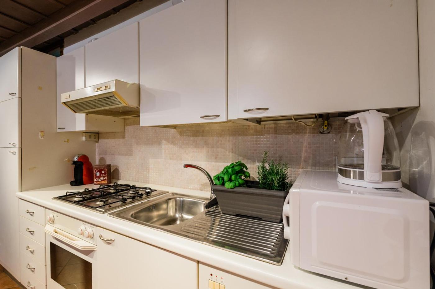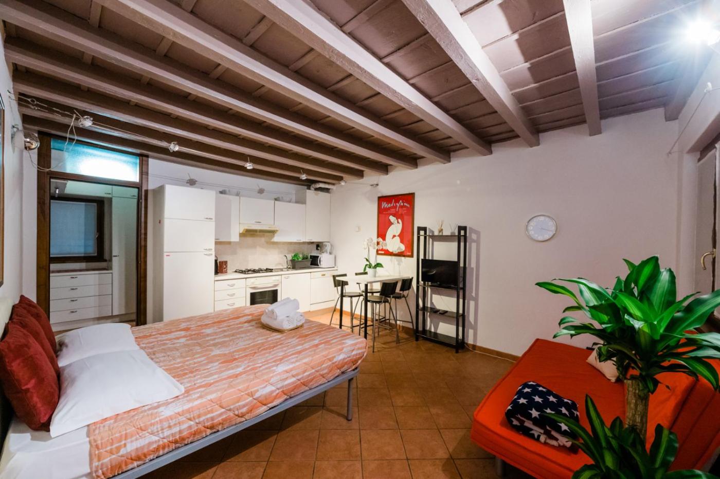 Questo appartamento comprende 1 camera da letto, un soggiorno, una cucina con utensili, frigorifero e macchina da caffè, e 1 bagno con bidet e vasca o doccia. Presso questo appartamento troverete asciugamani e lenzuola in dotazione.