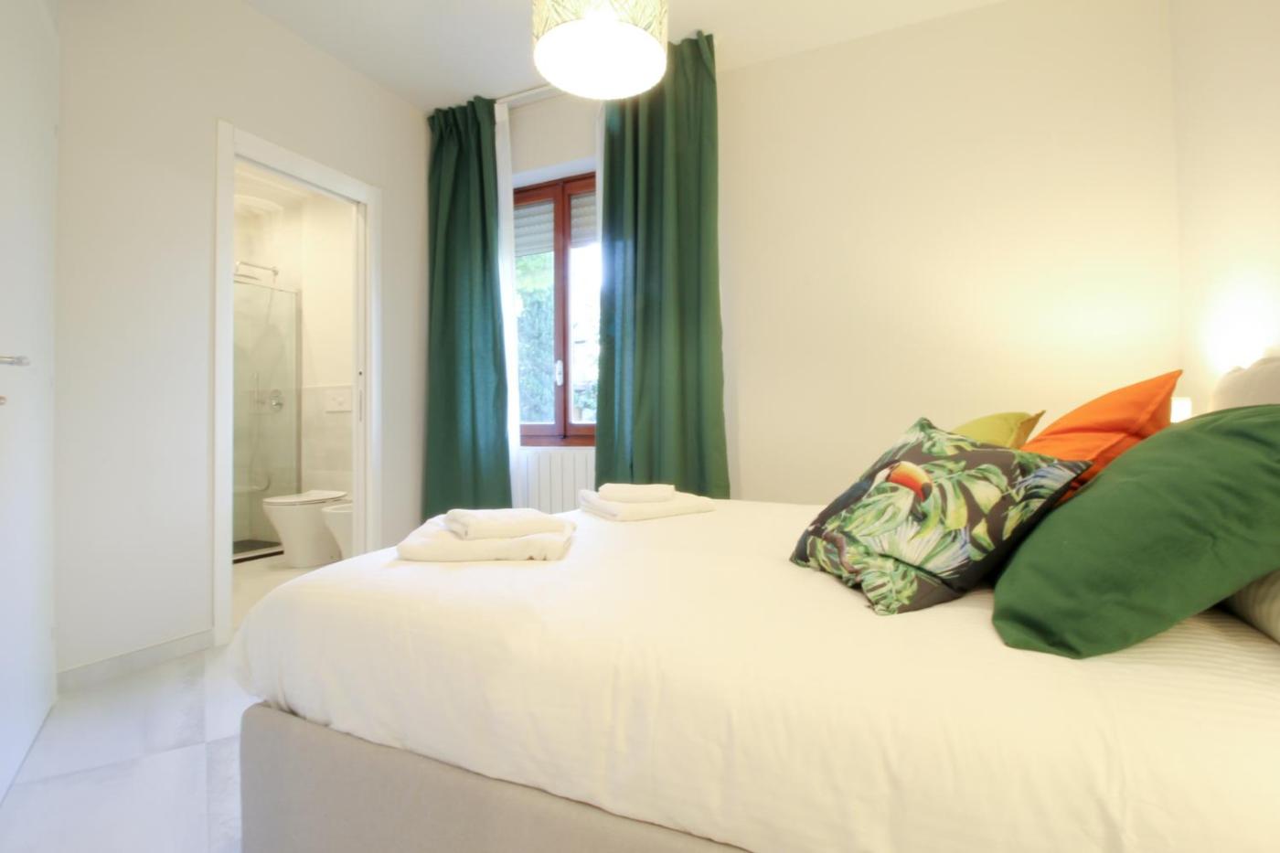 Appartamento con 2 Camere da Letto. Appartamento spazioso con ingresso indipendente composto da 2 camere da letto, area salotto e 2 bagni con doccia e bidet. La cucina è completa di piano cottura, frigorifero, lavastoviglie e utensili. Questo appartamento climatizzato è dotato di TV a schermo piatto con servizi di streaming, lavatrice,per la preparazione di tè e caffè, zona pranzo e vista sul giardino. Dispone di 2 letti.