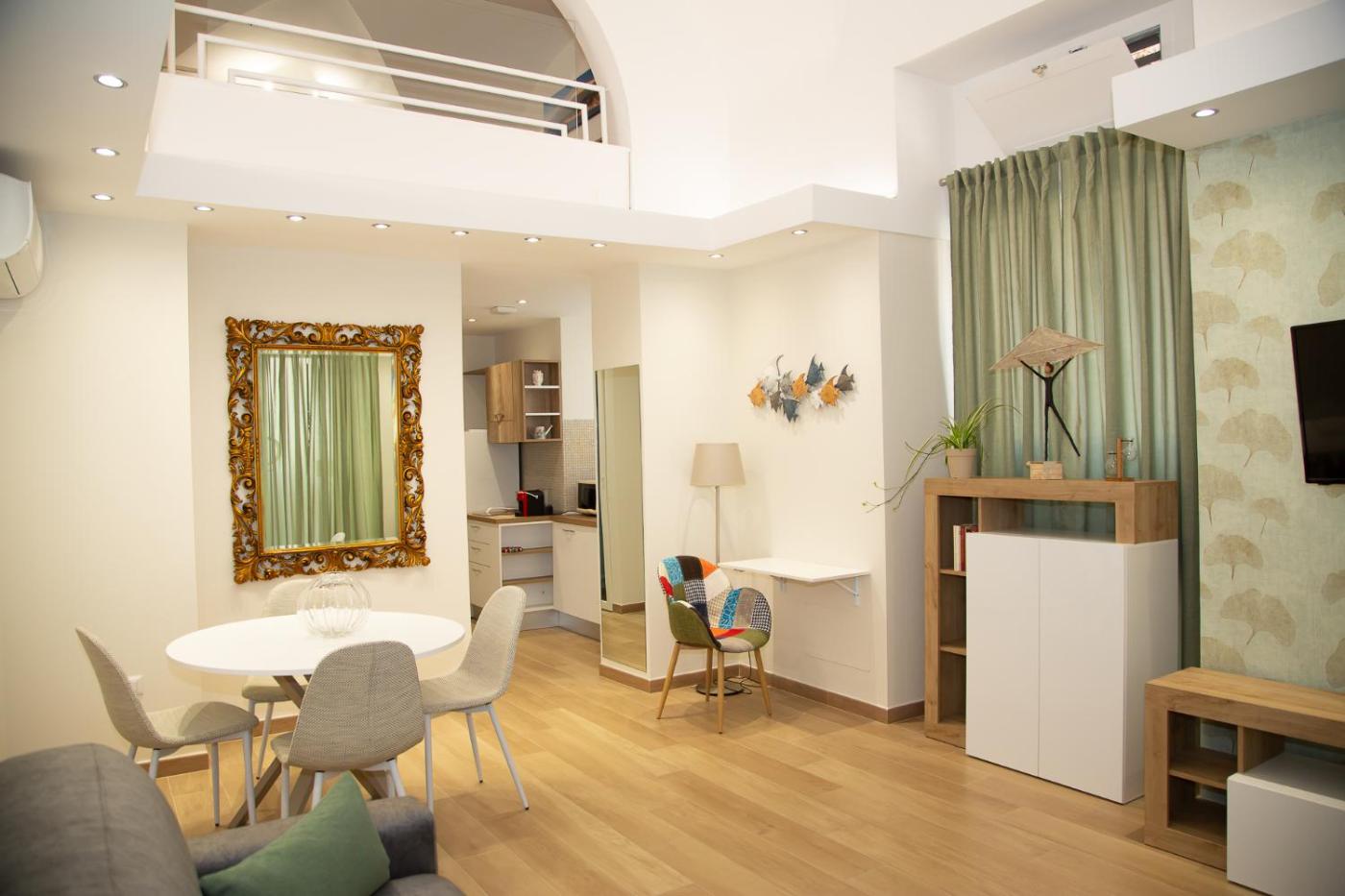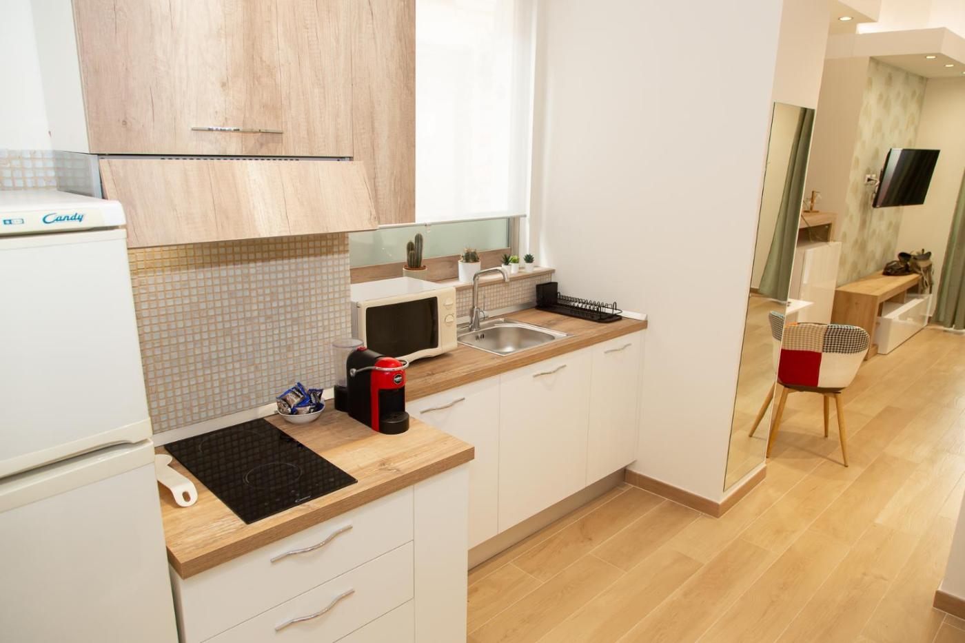 Appartamento con 1 Camera da Letto - Non Fumatori. Boasting a private entrance, this air-conditioned apartment includes 1 living room, 1 separate bedroom and 1 bathroom with a shower and a bidet. In the well-fitted kitchenette, guests will find a stovetop, a refrigerator, kitchenware and a microwave. The apartment has parquet floors, a seating area with a flat-screen TV, a tea and coffee maker, a dining area as well as a quiet street view. The unit has 2 beds.