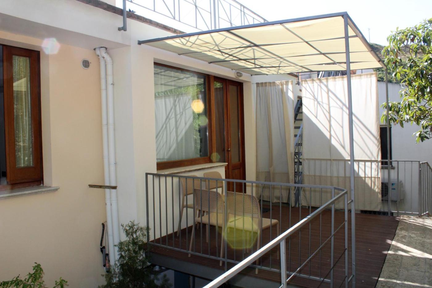 Monolocale con Balcone. Potrete preparare i pasti nella cucina, attrezzata con piano cottura, frigorifero, utensili e forno. Il monolocale dispone di aria condizionata, lavatrice, balcone con vista sul giardino e bagno privato con doccia. L’alloggio presenta 2 letti. ;