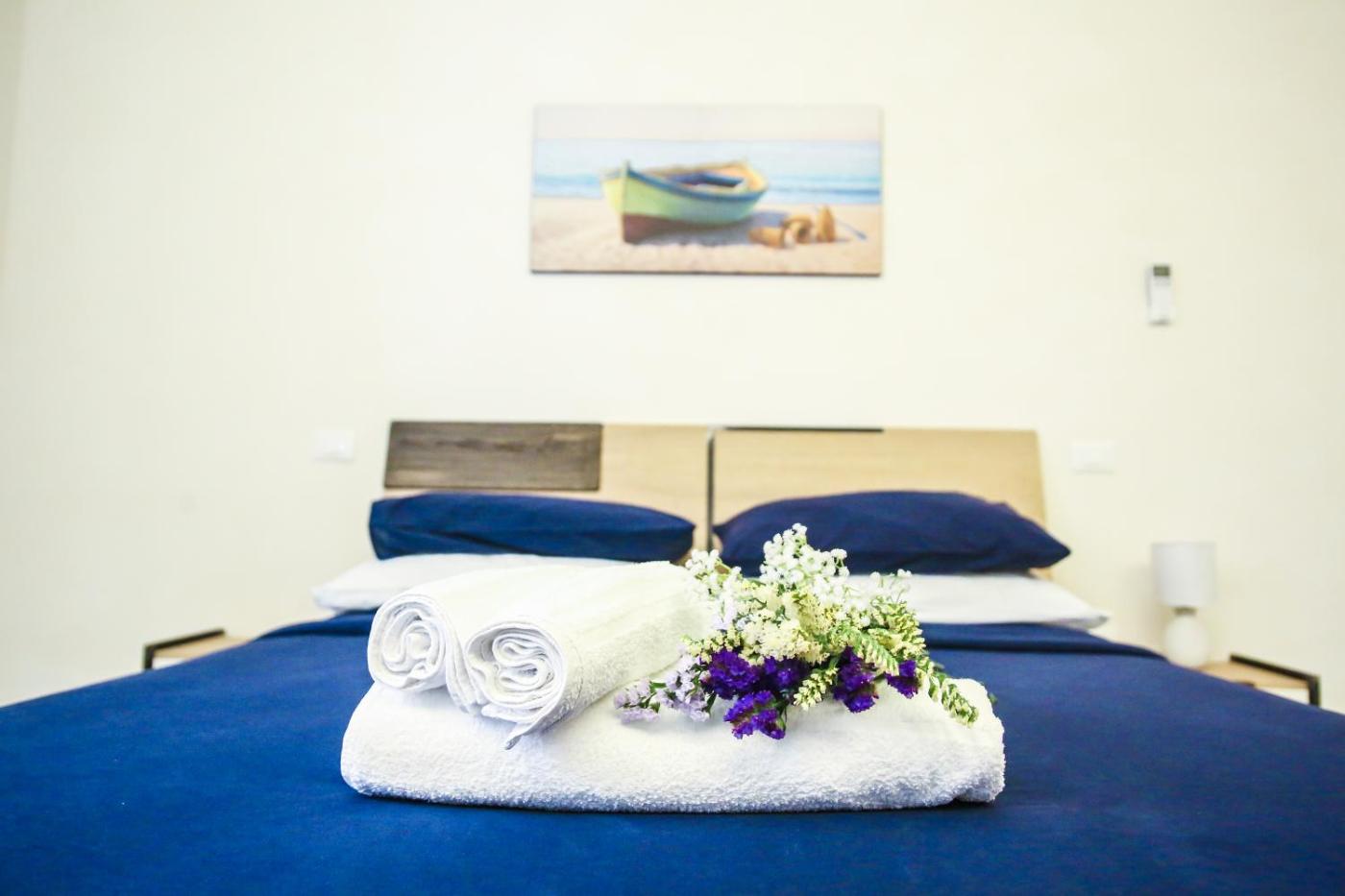 Ogni alloggio presenta un bagno privato con bidet, l’aria condizionata, una TV a schermo piatto e un frigorifero. Alcune unità includono una terrazza eo un balcone con vista sulla città o sul mare.