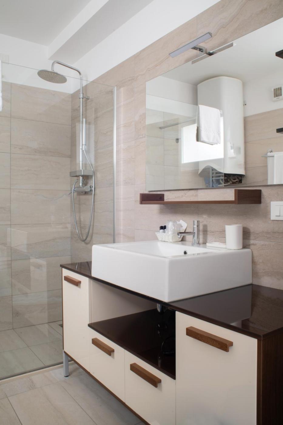 Camera Tripla. The triple room features air conditioning, a private entrance, a terrace with a quiet street view as well as a private bathroom boasting a shower. The unit has 2 beds. ;