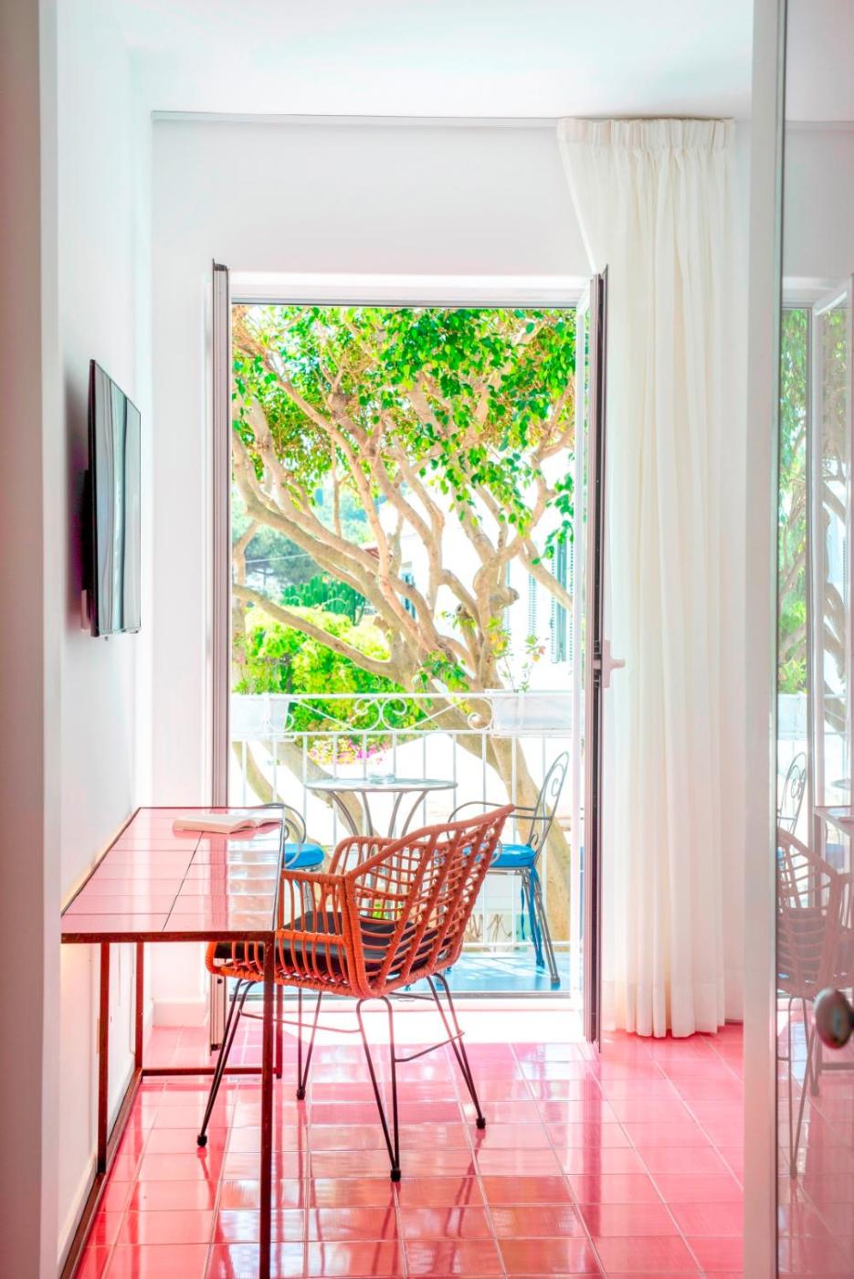 Camera Matrimoniale Superior con Vista Mare. Camera dotata di connessione internet ad alta velocità gratuita e TV LCD con canali satellitari. Questa sistemazione dispone di un balcone arredato con vista sul mare e sulla baia del Castello Aragonese. ;