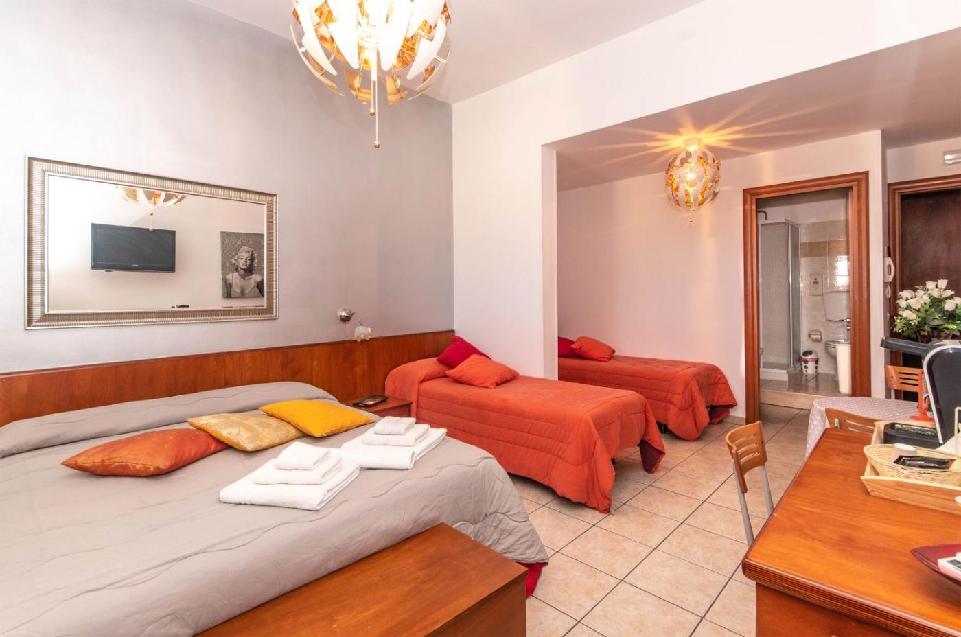 Camera Quadrupla. Spaziosa camera climatizzata dotata di TV a schermo piatto e bagno interno condi cortesia e asciugacapelli. ;