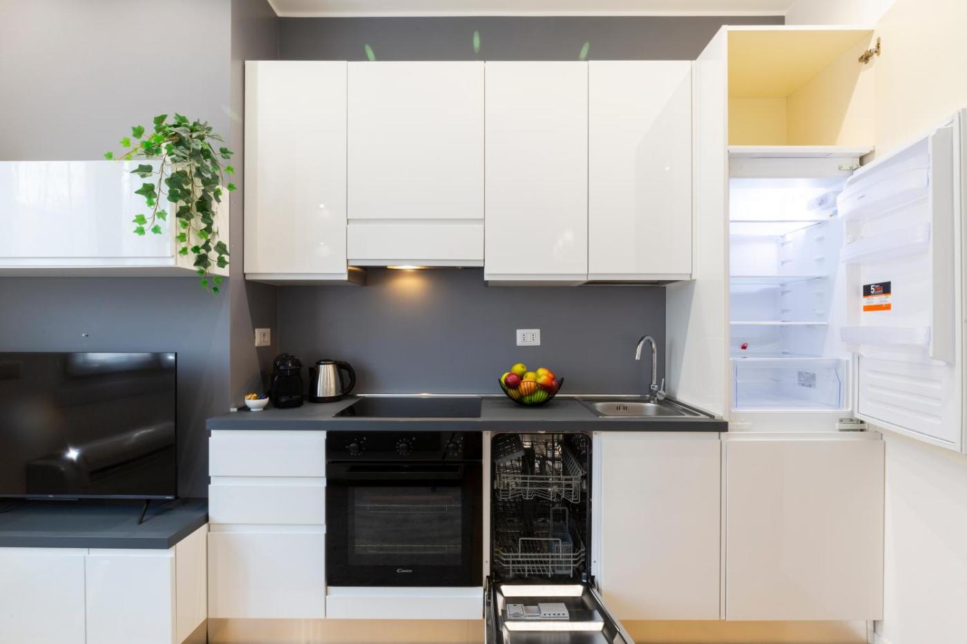 Appartamento con 1 Camera da Letto. This apartment comprises 1 living room, 1 separate bedroom and 1 bathroom with a shower and free toiletries. Meals can be prepared in the well-fitted kitchenette, which comes with a stovetop, a refrigerator, a dishwasher and kitchenware. This apartment is air-conditioned and features a seating area with a flat-screen TV, a washing machine, a tea and coffee maker, a dining area, as well as a wardrobe. The unit offers 2 beds.