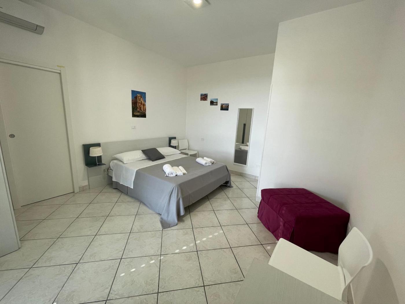 Camera Matrimoniale con Terrazza. Ampia camera matrimoniale dotata di ingresso indipendente, aria condizionata, terrazza affacciata sulla città e bagno privato con doccia. L’alloggio presenta 1 letto. ;