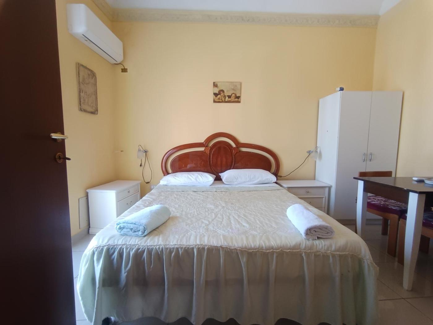 Camera Matrimoniale con Bagno Privato. Monolocale climatizzato con ingresso indipendente, balcone affacciato sulla città e bagno privato munito di doccia. L’unità include 1 letto. ;