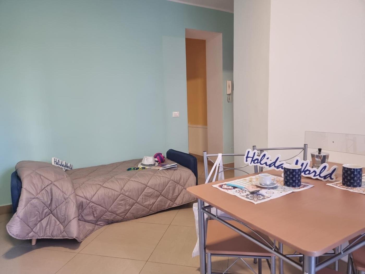 Appartamento con 1 Camera da Letto. This air-conditioned apartment comprises 1 living room, 1 separate bedroom and 1 bathroom with a shower. Meals can be prepared in the well-fitted kitchenette, which comes with a stovetop, a refrigerator, kitchenware and an oven. Featuring a balcony with city views, this apartment also provides a washing machine and a TV. The unit offers 2 beds.