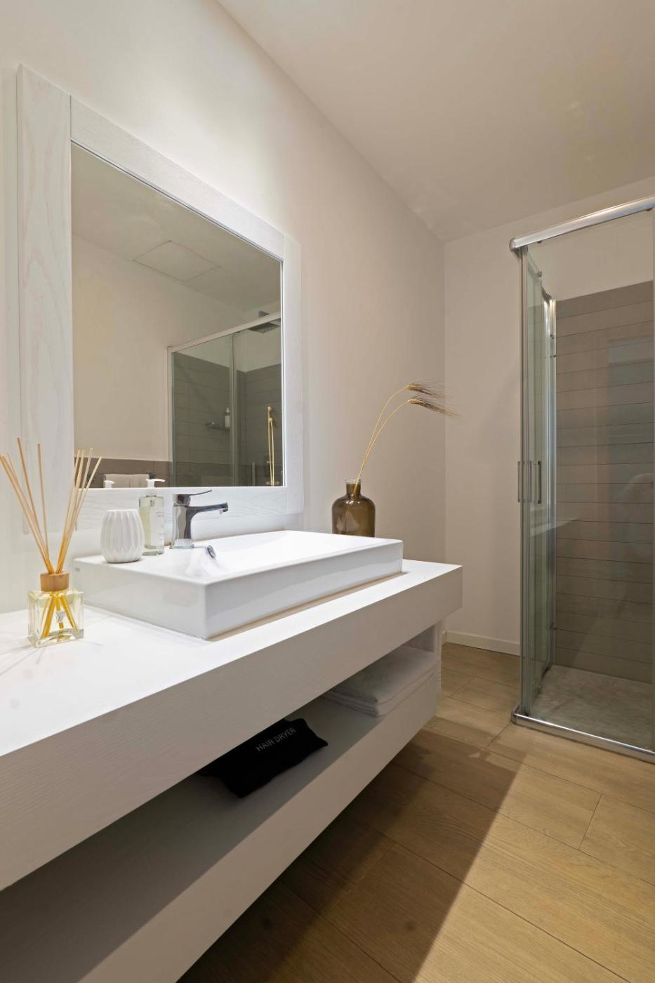 Camera Superior MatrimonialeDoppia con Letti Singoli. Camera piĂą spaziosa e climatizzata con vista sul mare, patio privato con affaccio sul giardino, TV e bagno privato completo di doccia con cromoterapia. ;