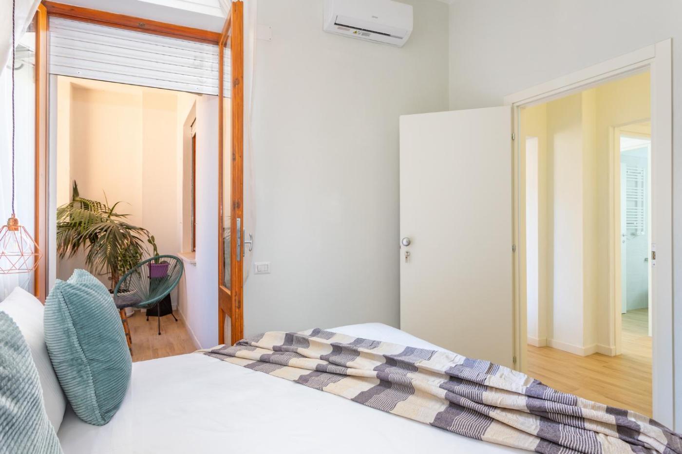 Camera Matrimoniale con Balcone. Camera matrimoniale climatizzata dotata di TV a schermo piatto con servizi di streaming, bagno privato e balcone con vista sulla città . Lalloggio dispone di 1 letto. ;