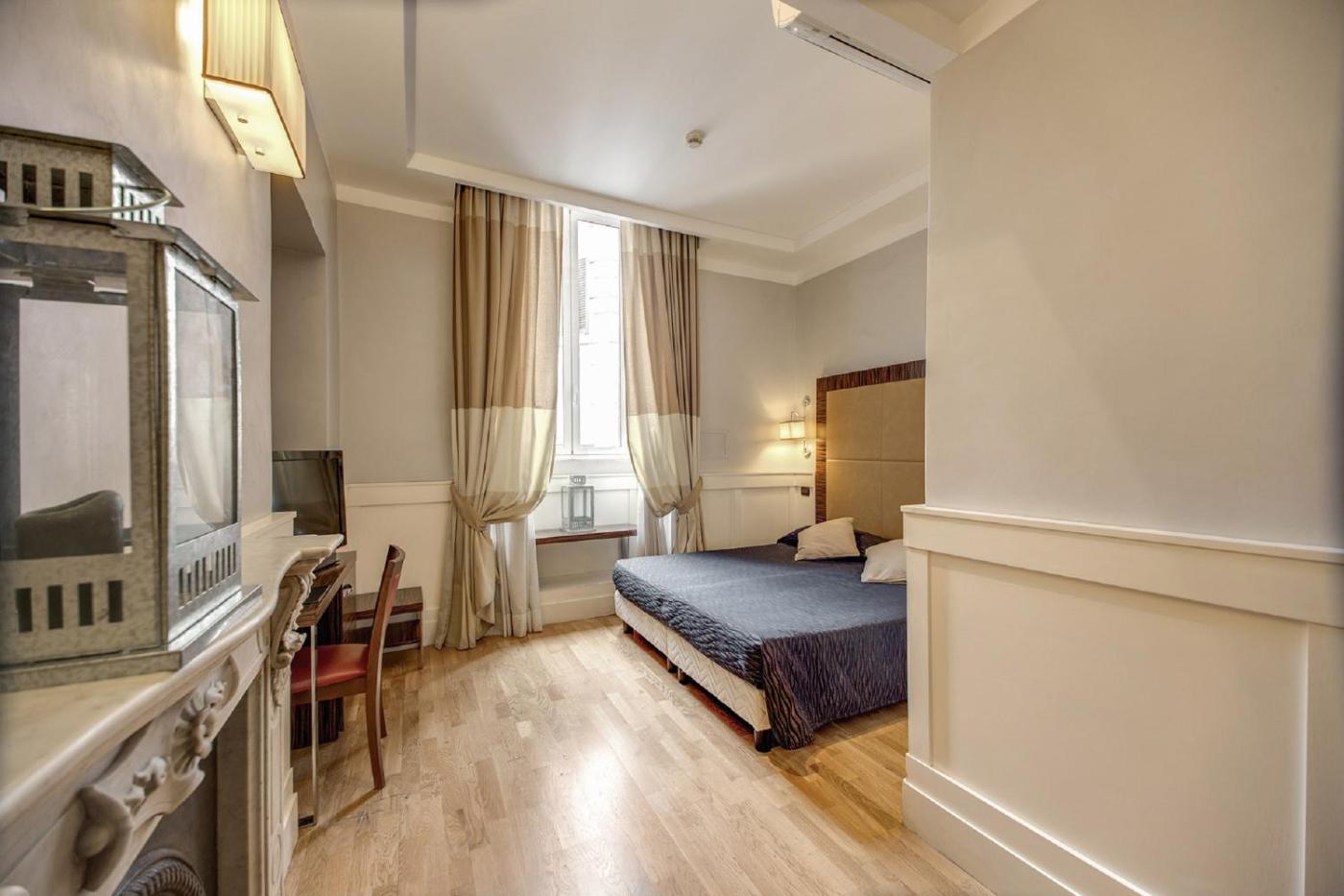 Camera Matrimoniale Economy. Camera piĂą piccola in stile classico con aria condizionata, TV a schermo piatto e bagno privato. ;