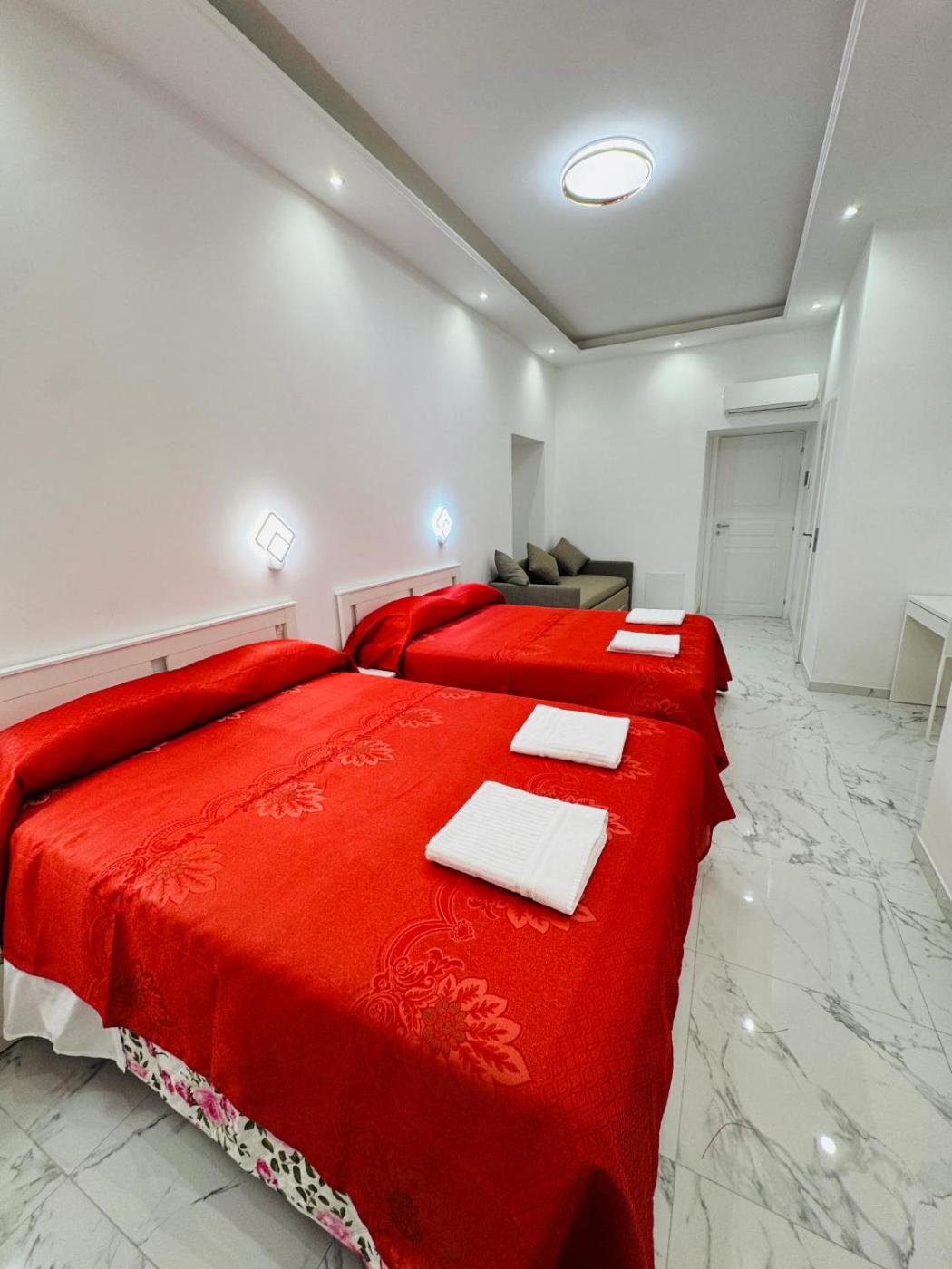 Camera Quadrupla con Bagno Privato. Camera quadrupla climatizzata dotata di armadio e bagno privato munito di doccia e asciugacapelli. Dispone inoltre di bollitore elettrico, pavimento piastrellato, riscaldamento e TV a schermo piatto. L’alloggio presenta 2 letti. ;
