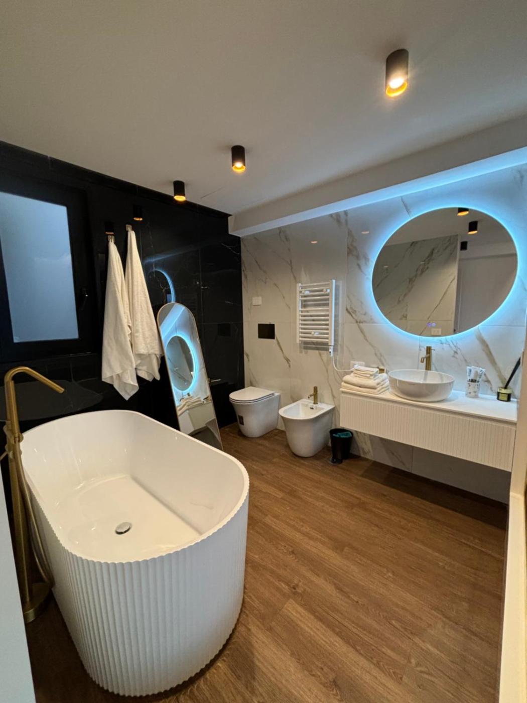 Camera King Deluxe. Offering free toiletries and bathrobes, this double room includes a private bathroom with a bath, a bidet and a hairdryer. In the well-fitted kitchen, guests will find a stovetop, a refrigerator, kitchenware and a microwave. The air-conditioned double room offers a flat-screen TV, soundproof walls, a minibar, a tea and coffee maker as well as city views. The unit has 1 bed. ;