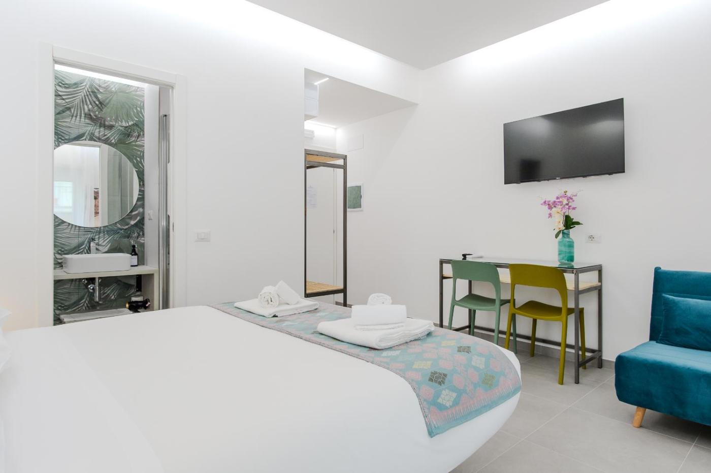 Camera Tripla con Bagno Privato. Offering free toiletries, this triple room includes a private bathroom with a shower and a hairdryer. This triple room is air-conditioned and has a flat-screen TV with cable channels, a washing machine, a tea and coffee maker and a dining area. The unit has 2 beds. ;