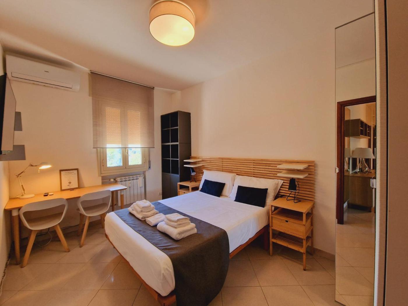 Camera Matrimoniale. Featuring free toiletries and bathrobes, this double room includes a shared bathroom with a shower, a bidet and a hairdryer. The air-conditioned double room features a flat-screen TV, a minibar, a wardrobe, a tiled floor as well as city views. The unit has 1 bed.