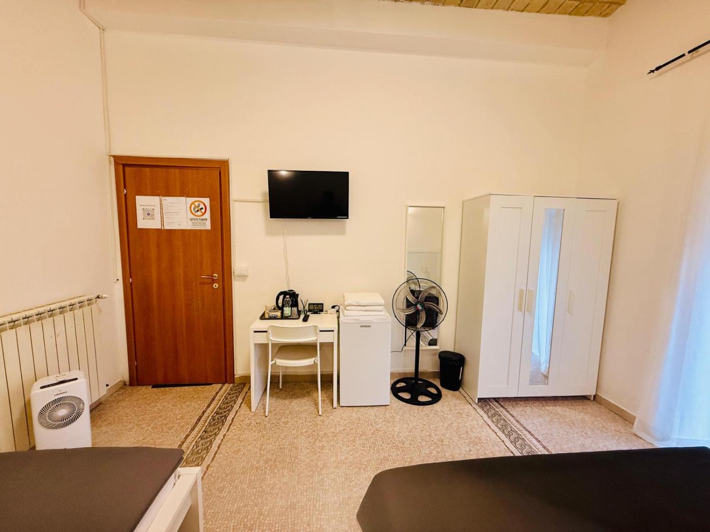 Camera Tripla Economy con Bagno in Comune. Offering free toiletries, this triple room includes a shared bathroom with a bath, a shower and a bidet. The triple room offers a flat-screen TV, a wardrobe, an electric kettle, tumble dryer as well as city views. The unit has 2 beds.