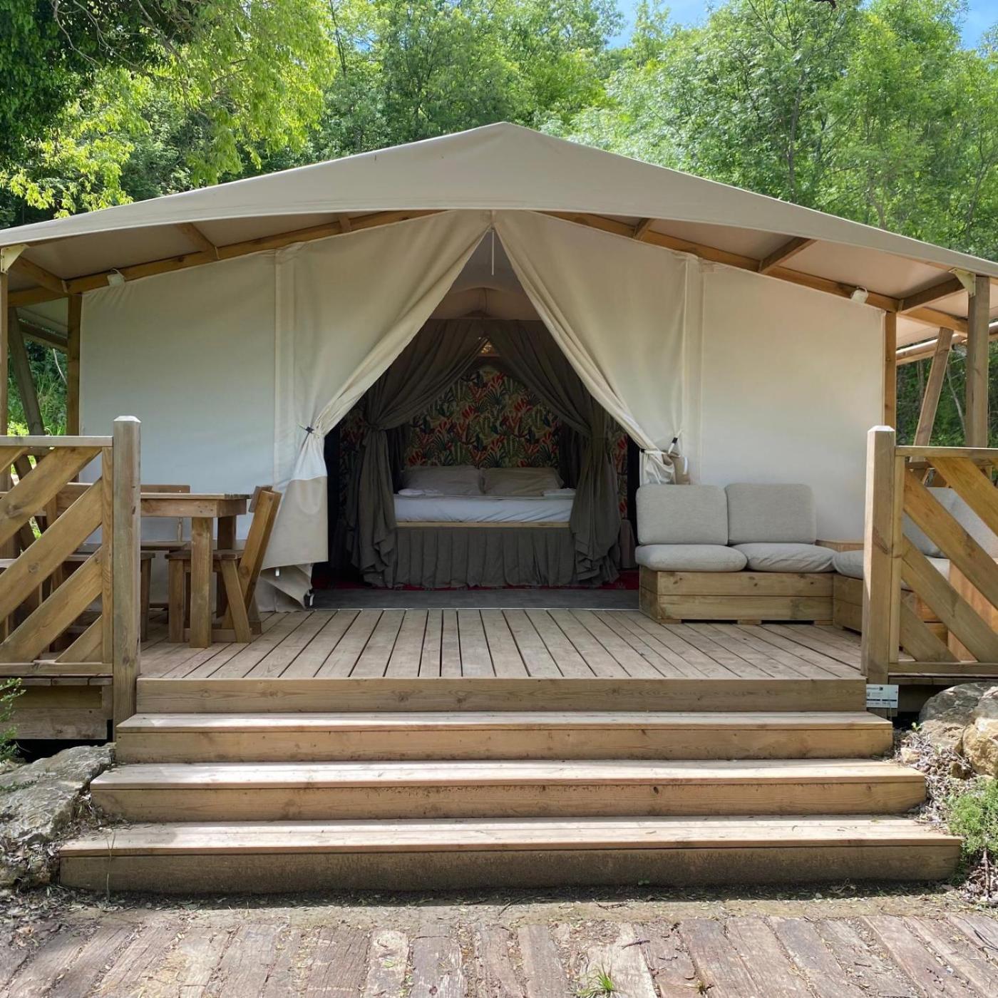Tenda. This tents special feature is the pool with a view. Guests will find a stovetop, a refrigerator, kitchenware and a tea and coffee maker in the well-equipped kitchenette. The tent also offers a barbecue. The tent provides air conditioning, a washing machine, a terrace with garden views as well as a private bathroom featuring a shower. The unit offers 1 bed. ;