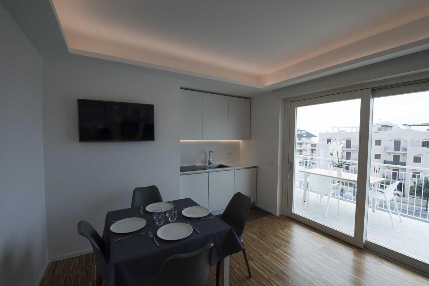 Ogni alloggio dispone di un balcone con vista sulla città , una TV a schermo piatto, una zona salotto, una cucina e un bagno privato dotato di bidet,di cortesia e asciugacapelli. Troverete anche frigorifero, piano cottura e macchina da caffè.