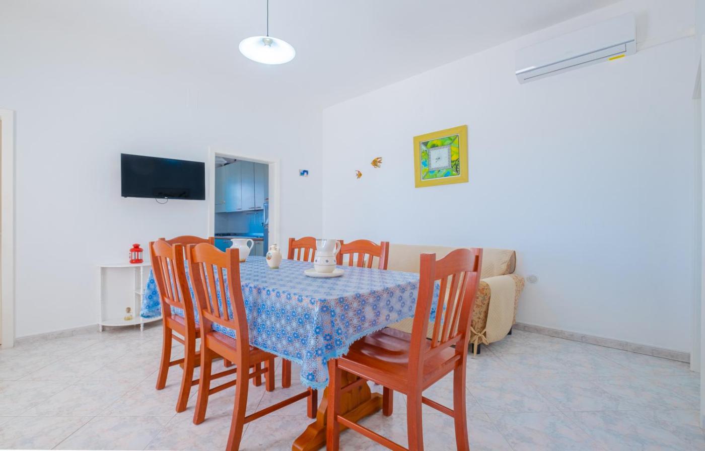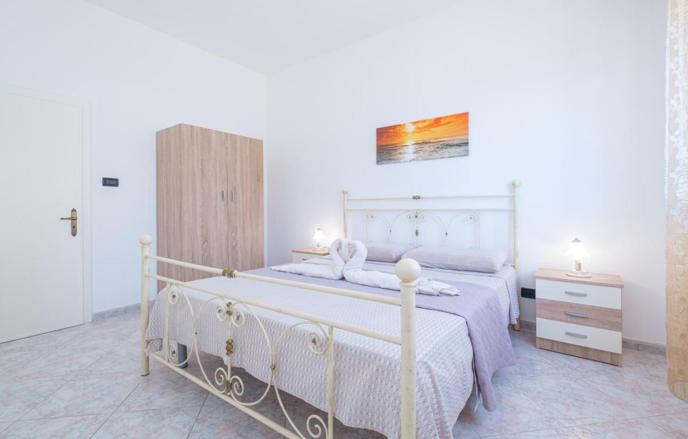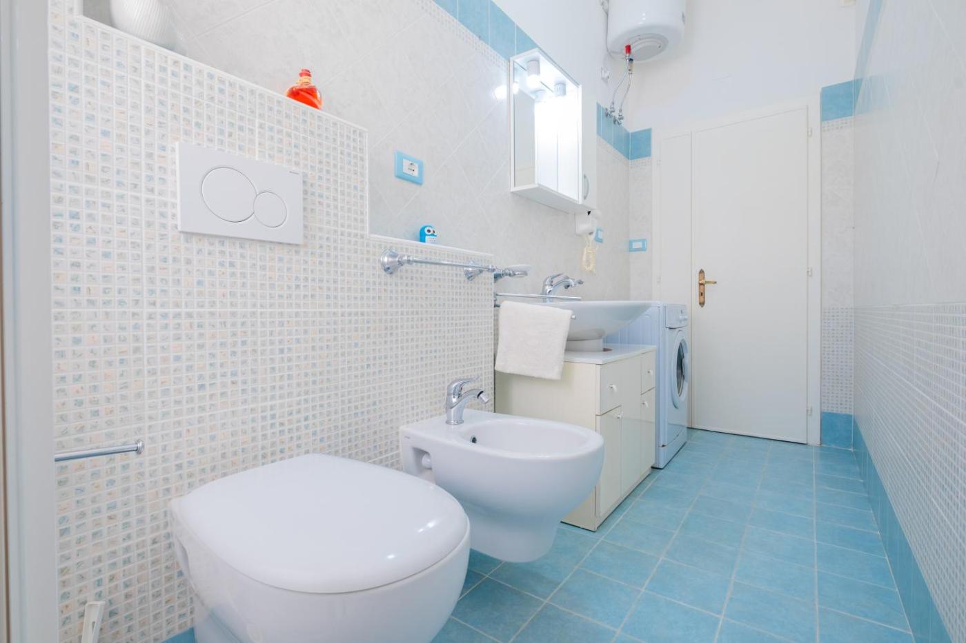 Villa con Vista Mare. Featuring a private entrance, this air-conditioned villa comprises 1 living room, 3 separate bedrooms and 1 bathroom with a shower and a bidet. Guests will find a stovetop, a refrigerator, kitchenware and an oven in the fully equipped kitchen. The villa also provides guests with a barbecue. The villa features tiled floors, a seating area with a flat-screen TV, a washing machine, a dining area as well as sea views. The unit offers 5 beds.