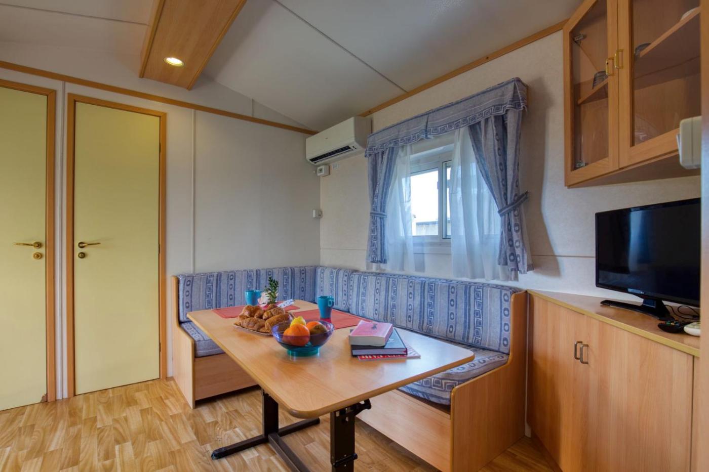 Casa Mobile. Boasting a private entrance, this air-conditioned mobile home includes 1 living room, 3 separate bedrooms and 1 bathroom with a shower and a bidet. The well-fitted kitchen has a stovetop, a refrigerator and kitchenware. Featuring a terrace, this mobile home also offers a coffee machine, a seating area and a flat-screen TV. The unit has 5 beds. ;
